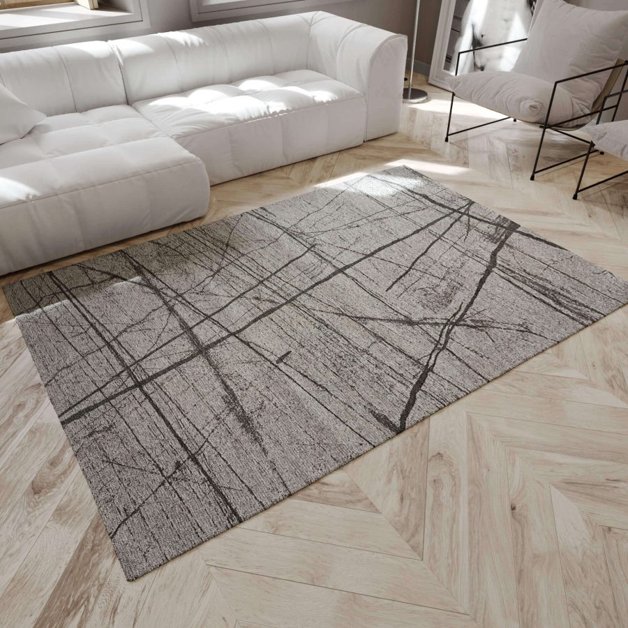 שטיח בלגי בגימור מושלם בגוונים כהים אפור עכבר בשילוב פסים שחורים , להשלמת הלוק באלגנטיות