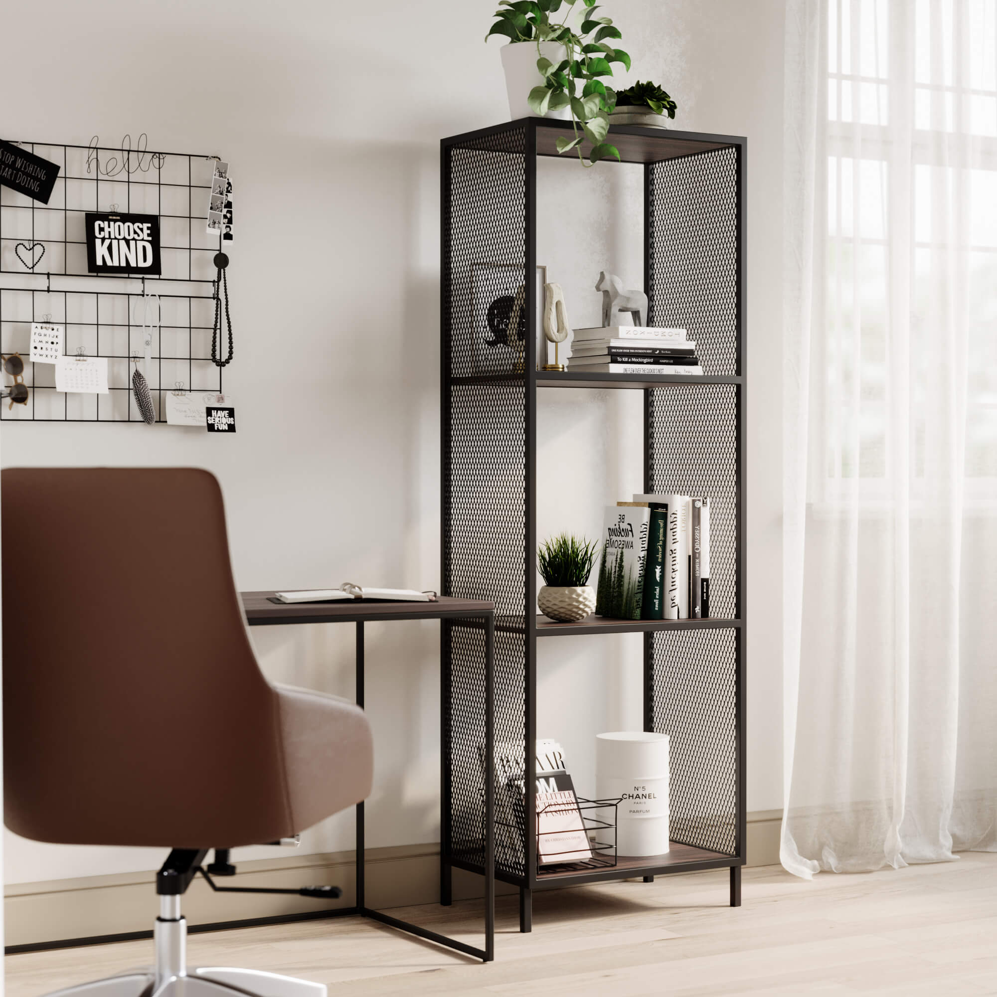 רגלי מתכת דקיקות (20 מ”מ) בשילוב דפנות רשת מתכת מעויינים