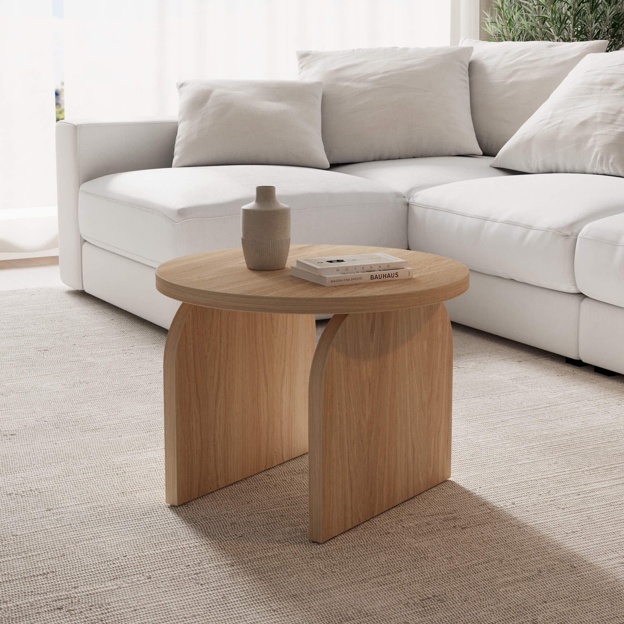 שולחן קפה PORT עגול בגוון אלון טבעי בגימור פורניר אלון טבעי צבוע בלכה אפוקסי מט, הפיס המושלם שיסגור את הפינה